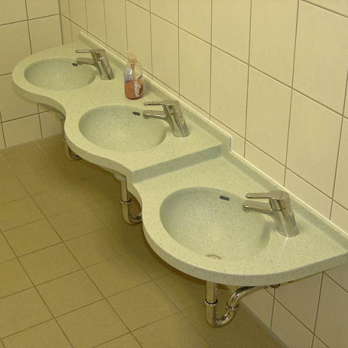 - als freistehende Waschinsel oder farbiger Reihenwaschtisch