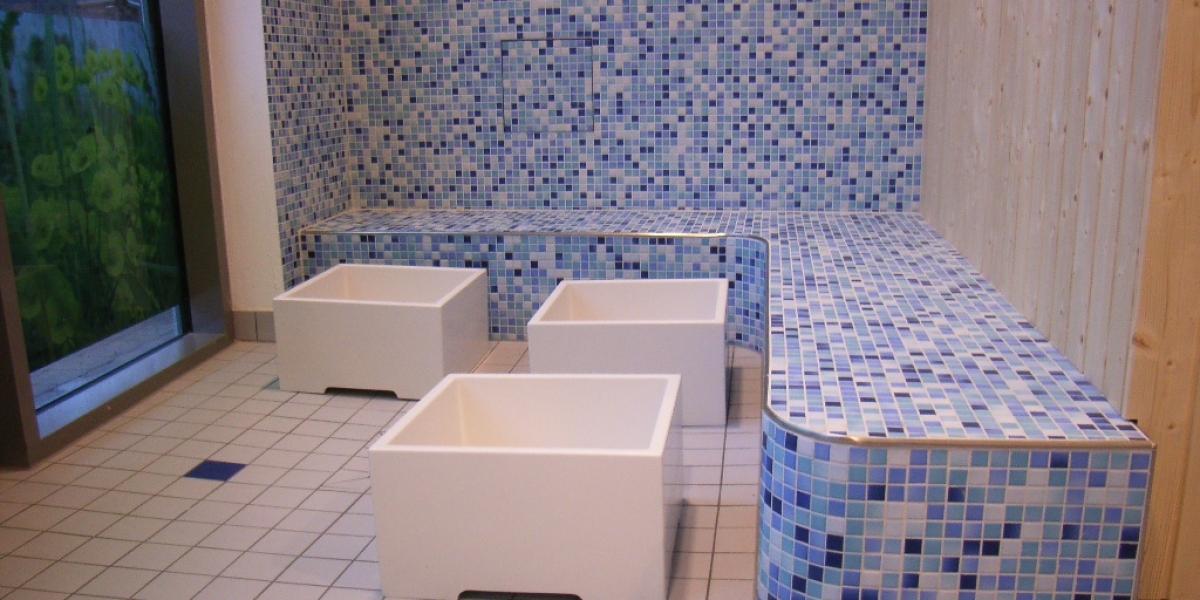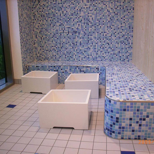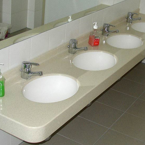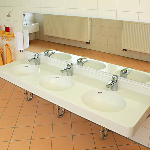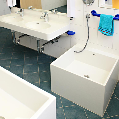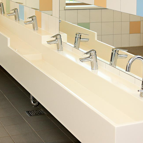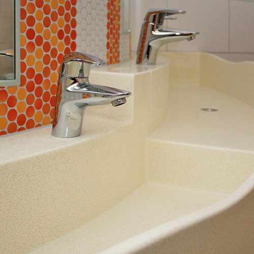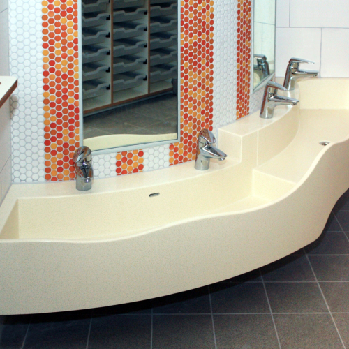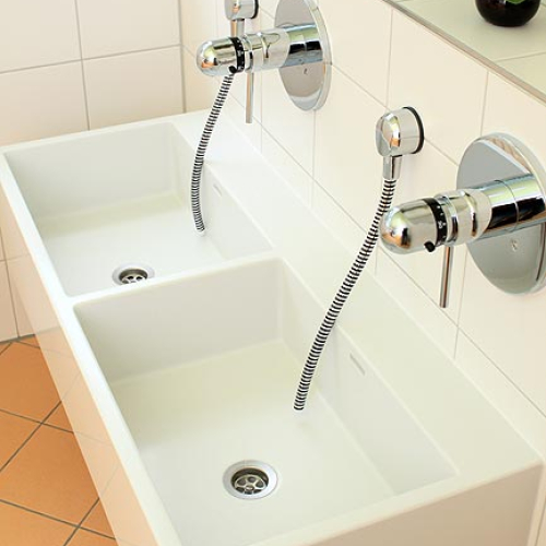 - als freistehende Waschinsel oder farbiger Reihenwaschtisch